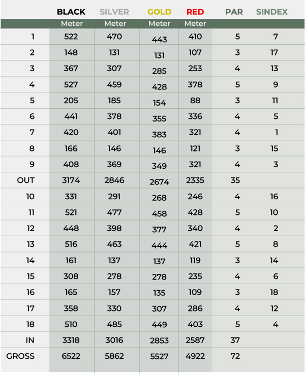 Montgomerie Maxx Royal Golf Course offers a challenging experience with slope ratings from the back tees of 143 (black), 136 (white), and 125 (yellow) for men and 142 (yellow) and 139 (red) for women. These ratings reflect the course's unique design and level of difficulty, ensuring a rewarding game for players of all skill levels.